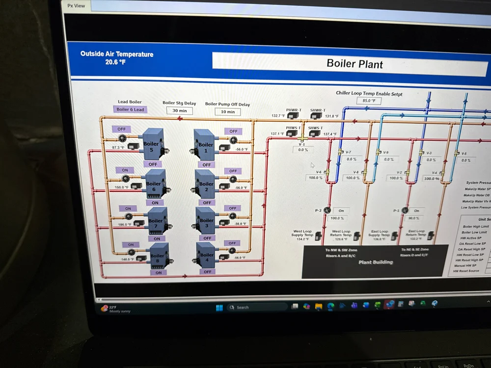 Given the winter schedule, maintaining heat throughout construction was critical. Lee Mechanical implemented advanced control strategies and phased planning to keep the building operational while half of the boilers were removed. The team also adjusted sequencing to bring one new boiler online earlier than planned to address temperature concerns.