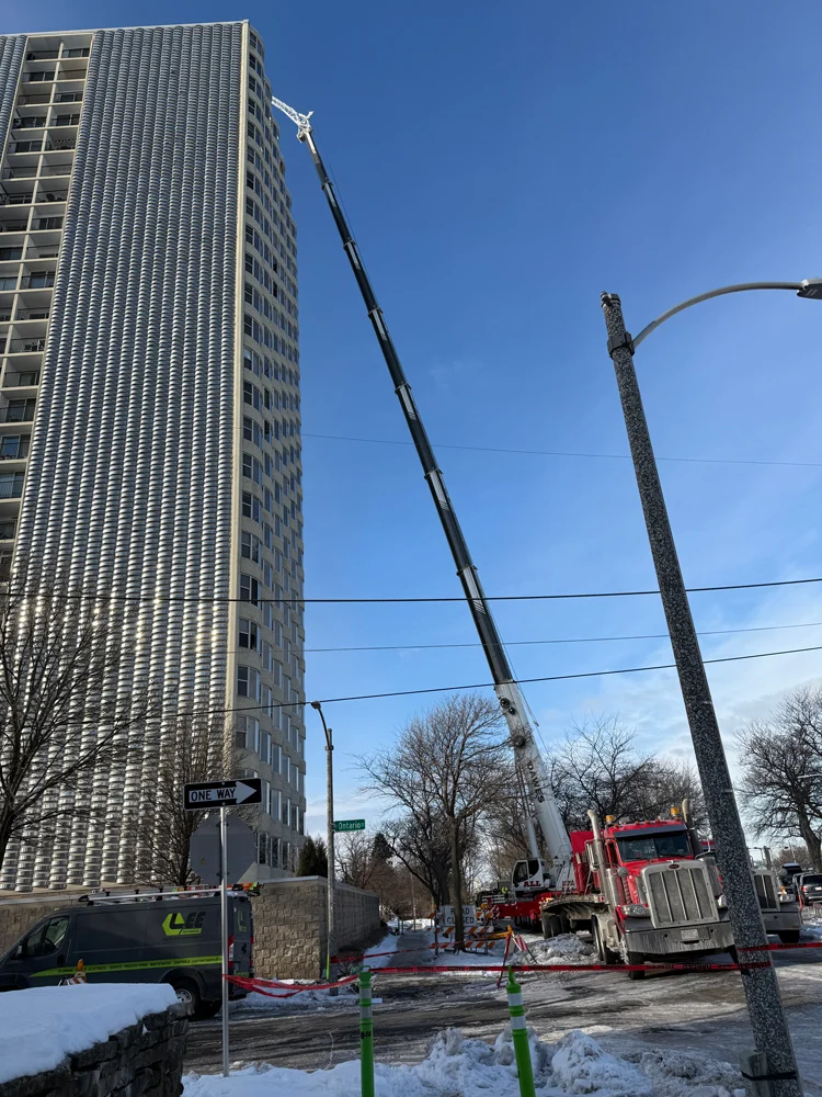Bay View Terrace is a 25-story high-rise condominium building situated directly on the lakefront. The boiler plant is located in a rooftop penthouse, creating significant access and material-handling challenges. The building’s height, active occupancy, and winter construction timeline required detailed planning and execution to minimize disruption to residents. Lee Mechanical performed HVAC, plumbing, and electrical work associated with the boiler replacement, including: