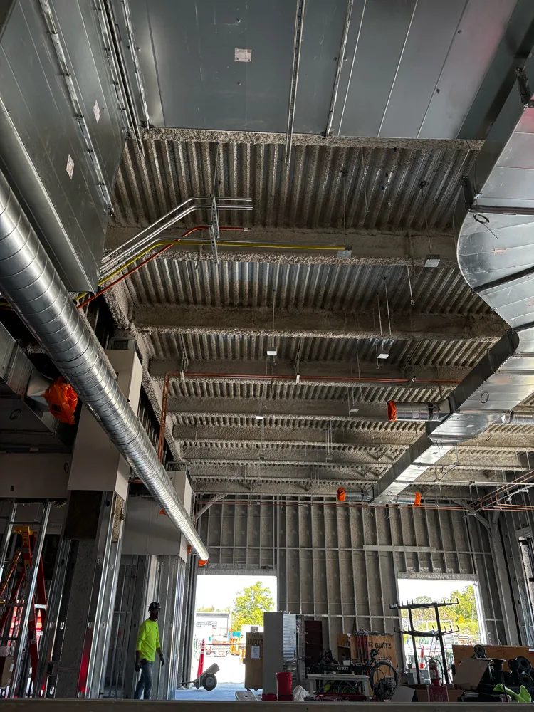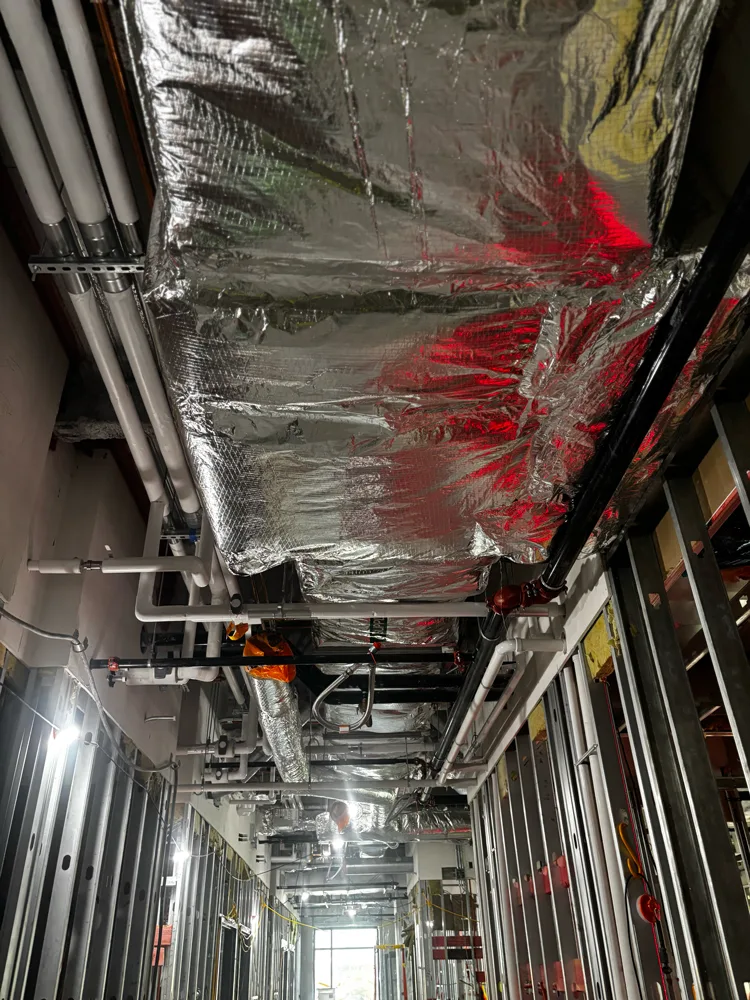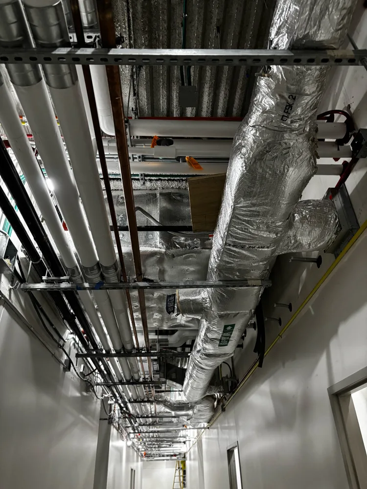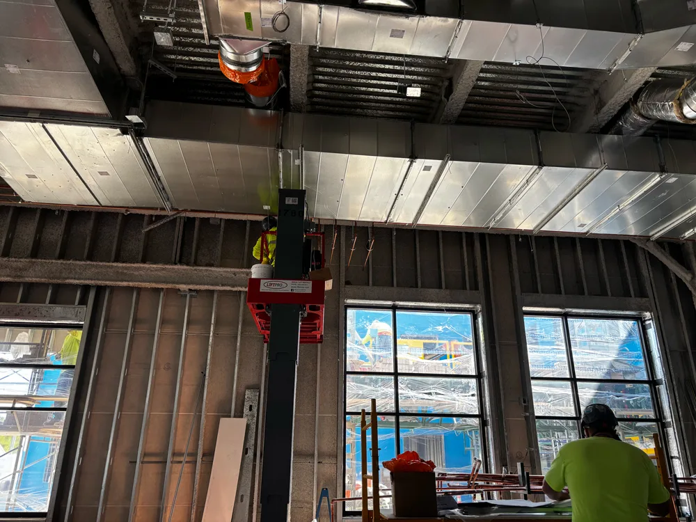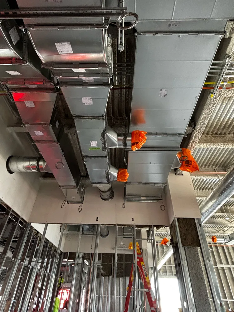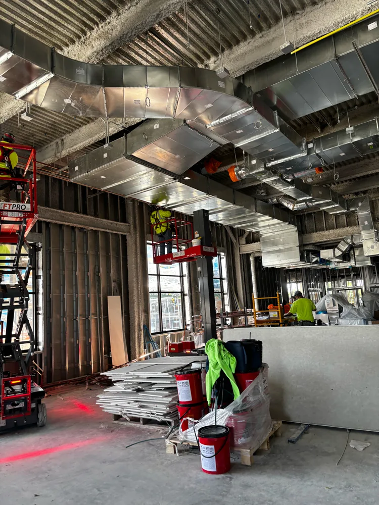 Lee Mechanical is responsible for HVAC, mechanical, and plumbing throughout the project. This is a fully BIM-coordinated project, and Trimble technology was used extensively to expedite underground layout, hanger placement, and roof penetrations. Design began in April 2025 with substantial completion scheduled for March 2026, an aggressive timeline that required tight coordination between all trades.